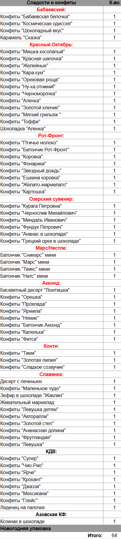 Интернет-магазин сладких новогодних подарков работает от производителя напрямую, за счет чего мы убираем посредников и снижаем цены на детские новогодние подарки. Кроме того, наша логистика позволяет доставить заказ практически в любой город за наш счет. Все цены на сладкие подарки актуальны