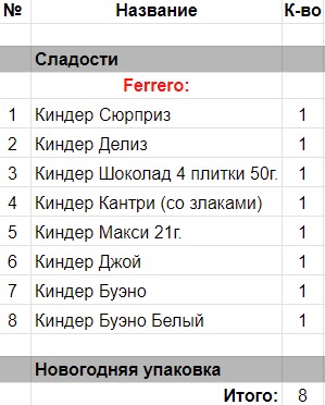 Сладкие новогодние подарки по составу