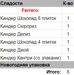 Кол-во сладостей: 6 шт.