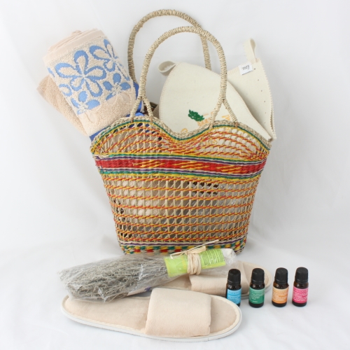 Состав: кошелка плетенная, арома веник, полотенце банное 70х100 см 100№ хлопок, тапочки банные, набор банный. набор арома масел