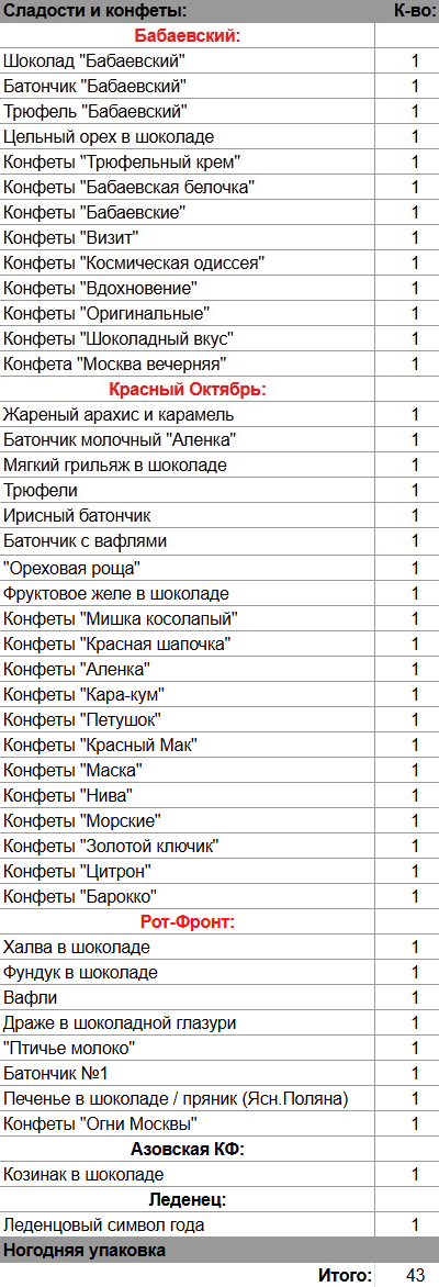 Кол-во сладостей: 43 шт.