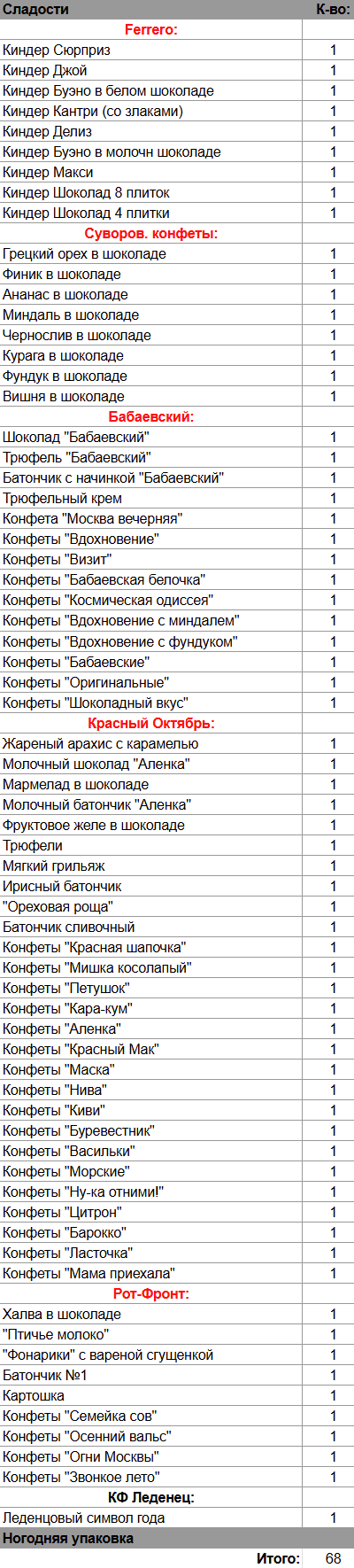 Интернет-магазин сладких новогодних подарков работает от производителя напрямую, за счет чего мы убираем посредников и снижаем цены на детские новогодние подарки. Кроме того, наша логистика позволяет доставить заказ практически в любой город за наш счет. Все цены на сладкие подарки актуальны