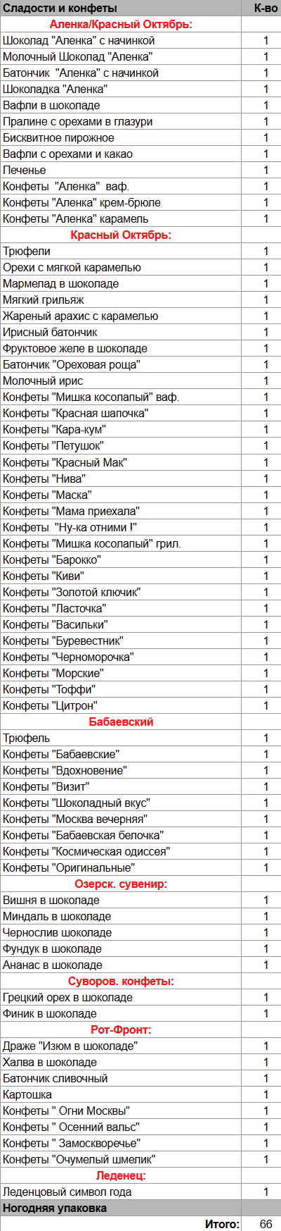 Интернет-магазин сладких новогодних подарков работает от производителя напрямую, за счет чего мы убираем посредников и снижаем цены на детские новогодние подарки. Кроме того, наша логистика позволяет доставить заказ практически в любой город за наш счет. Все цены на сладкие подарки актуальны
