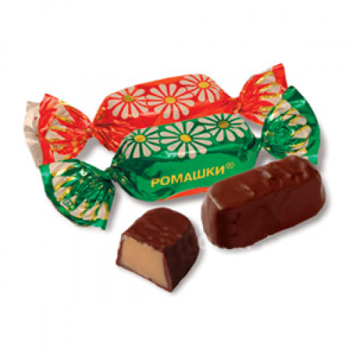 Конфеты Ромашки производства Красный Октябрь можно купить оптом с доставкой по Москве, Подмосковью и ЦФО. Низкая цена обусловлена отсутствием посредников при наличии прямого договора с производителем.  Все актуальные сертификаты в наличии. Минимальный заказ: 1 коробка