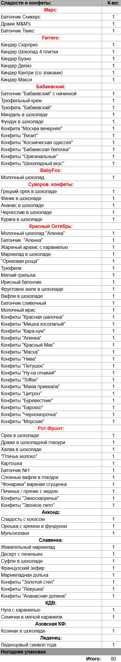 Кол-во сладостей: 80